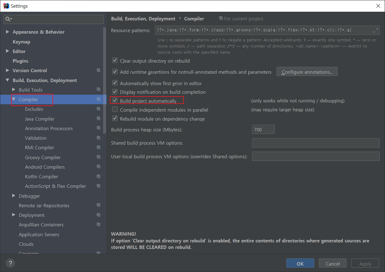 1) 'Build project automatically' 체크