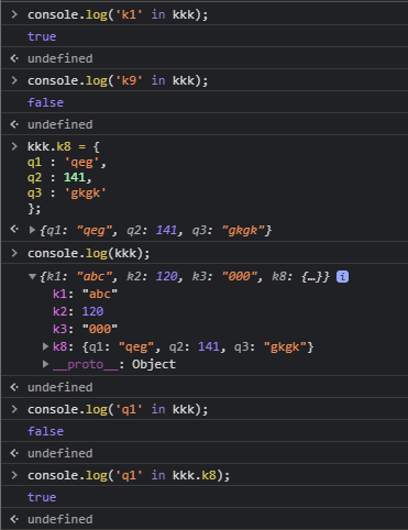 console.log('q1' in kkk.k8); // true